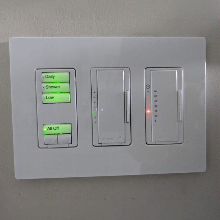 RadioRA 2 is a wireless total home control system. This energy-saving system gives you the ability to adjust the amount of daylight and electric light (using light controls and automated shades) as well as temperature in a single room or throughout your whole home. The system also turns off standby power to small appliances when they’re not in use.